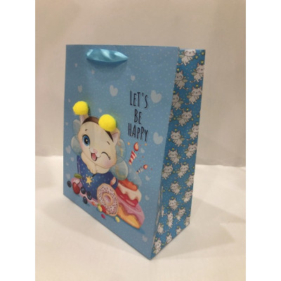 Пакет паперовий, 26х32х12 см Папір крейдований 140г/м2 Яскравий друк Pantone, матова ламінація, 2 пухнастих помпони на фронтальному GB-21122 :