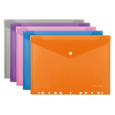Папка пластикова на кнопці Economix А4 180 мкм фактура помаранч з перфорацією асорті (E31325) :