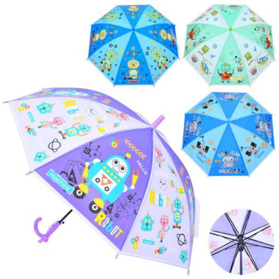 Парасолька дитяча MK 5247 (30шт) довжина 65,5см, тростина 60см, діаметр 83см, спиця 48см, клейонка, свисток,4 види(робот), в пакеті, :