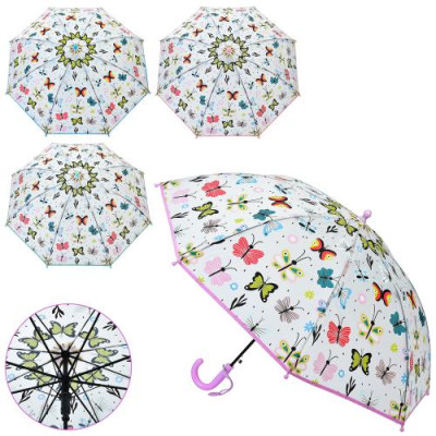 Парасолька дитяча MK 5268 (30шт) довжина 65,5см, тростина 62см, діаметр 85см, спиця 48см, клейонка, 4 кольори, в пакеті, :