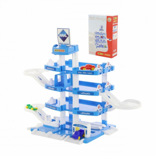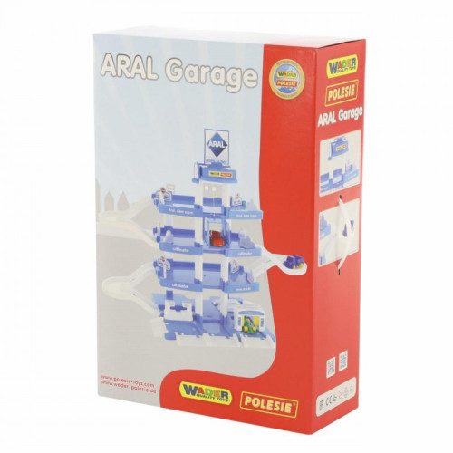 У комплекті з паркінгом йдуть три автомобілі - гоночний, легковий і вантажівка. Іграшка брендована мережею німецьких автозаправок і станцій технічного обслуговування Aral. Всі елементи паркінгу виконані з щільного високоякісного пластику, не мають гострих країв і шорсткостей. Паркінг Поліссі ARAL-2 випускається за ліцензією німецького виробника іграшок Wader і сертифікований за міжнародними стандартами якості та безпеки.