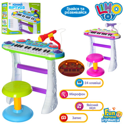 Піаніно 7235 Музикант, на підставці, стілець, мікрофон, 2 кольори, на бат-ці, в коробці