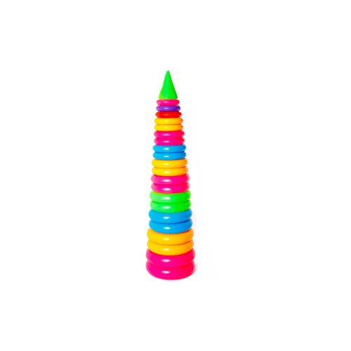 Дитяча пірамідка - традиційна іграшка для найменшиих діток, складається з 24 кілець. Від неї неможливо відірватися, адже вона яскрава і позитивна. Суть гри полягає в тому, щоб знімати і одягати на підставку у вигляді стрижня складові частини конструкції .