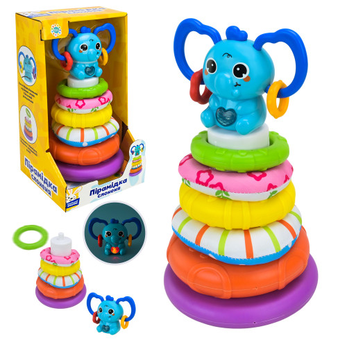 Пірамідка муз. арт. PL-724-85 "Сонячний зайчик",батар.у комплекті, кільця тканеві та пласт., р-р 23*13*13, короб. 15,5*14,1*26,8см : 15,5*14,1*26,8см