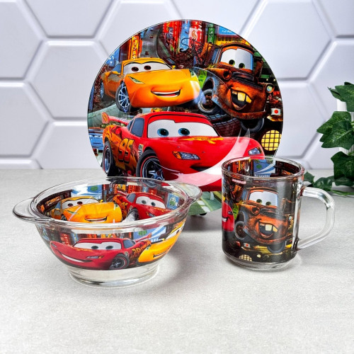Подарунковий набір посуду дитячий скло 3 пр Тачки :