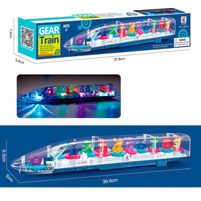Поїзд YJ388-63 (96шт) 36,5см, музика, світло, шестерні, на бат-ці, в кір-ці, 38-7-5,5см : Пістолет 0621 (180шт) на пульках, 15см, в кор-ці 18-13-3,5см