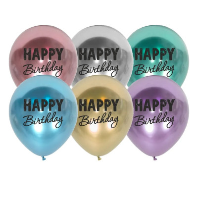 Повітряна кулька SDR-56 12" - Happy Birthday (1 ст.) Mirror 50 шт., 50 шт., 12"/30см., Мікс Brilliance, Шрифт :