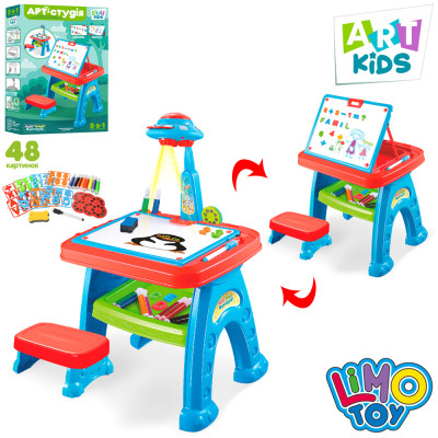 Продовжити покупкиПроектор AK 0005 (6шт) 2в1(мольберт),39-30-58см,стул,буквы-англ,цифры,маркеры,св,бат,кор.60-40-11см :