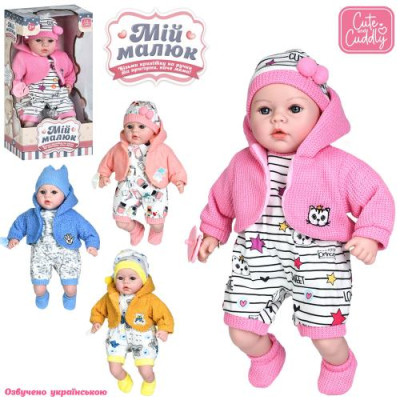 Пупс M 4014-1 I UA (18шт) 45см, м'яконабивний, 4 види, музика/звук (укр), вірш, пісня, 4 види, бат(табл), в кор-ці (розібрана), 23-43-16см :