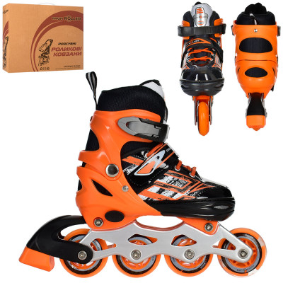Ролики A 4144-S-OR (31-34) (1шт) раздв, шнур+бакля,ал.рама,колПУ,64мм,1св,оранж,кор,34,5-27-10см : Ролики A 4144-S-OR (31-34), роздв, шнур+бакля, алюм рама, кол ПУ, 64 мм, 1 св, оранж, коробка