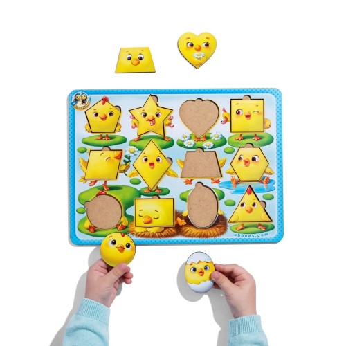 Розвиваючий дерев'яний сортер-вкладка 320x230x6 мм. "Курчата - фігури" :