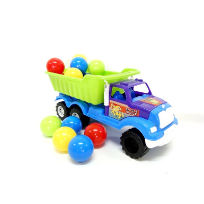 Самоскид з 15 кульками. Велика, міцна пластикова іграшка. Стильний сучасний дизайн. Стійка до дії несприятливих погодних чинників - дощу, снігу, низьких температур. Машинка функціональна : кузов піднімається і перевертається назад. Можна грати вдома і бра