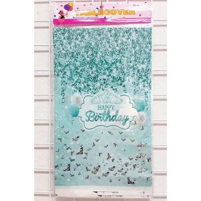Скатертина одноразова Happy birthday корона та кульки блакитному, розмір 137x183 см 15511 :