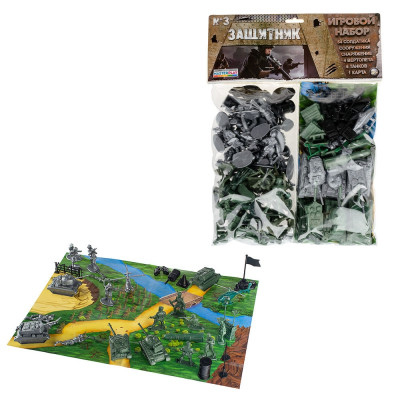 Дитячий набір солдатів "Захисники" №3 1-044 : Набір солдатиків "Захисник" : 54 солдатика, споруди, вертоліт 4 шт, танк 6шт, карта 1шт для проведення стратегічної гри з друзями.