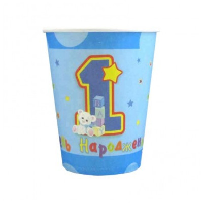 Стаканчик 1 Рік (синій) 8 шт в упак папір F-080804 : Стаканчик 1 Рік (синій) 8 шт в упак папір F-080804