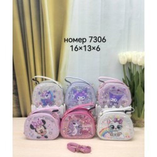 Сумка дитяча 7306 штучна шкіра 15*12*6с мікс кольорів, в упаковці :