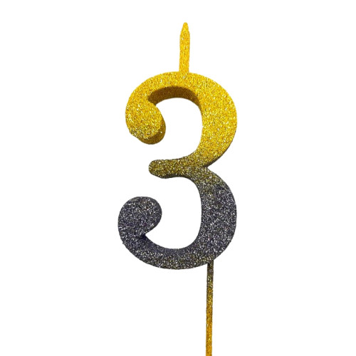 Свічка цифра Велика, шпажка, блискітки, золото-графіт 3 (30 см) 13601 :