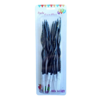 Свічки для торта Хвилясті кручені чорні з золотими краплями (12 шт) 15 см 15457 :