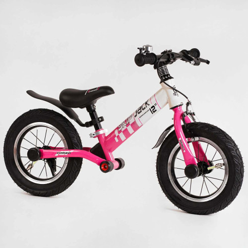 Велобіг Corso "Skip Jack" 25025 Рожево-білий, надувні колеса 12", сталева рама з амортизатором, ручне гальмо, підніжка, в коробці :
