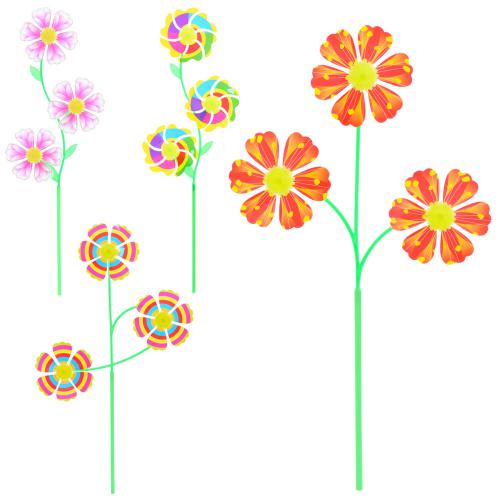 Вітрячок МR 1224 (300шт) вертушка, квітка 3шт, діам.9см, паличка20см, 3 види/мікс кольорів, в пакеті, 15-19-2см/28-9-2см :