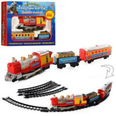Залізниця Жд 70155 (614) (24шт) Голубий вагон, муз(укр), світ, дим, довжина полотна 282см, в кор-ке, 38-26-7см :